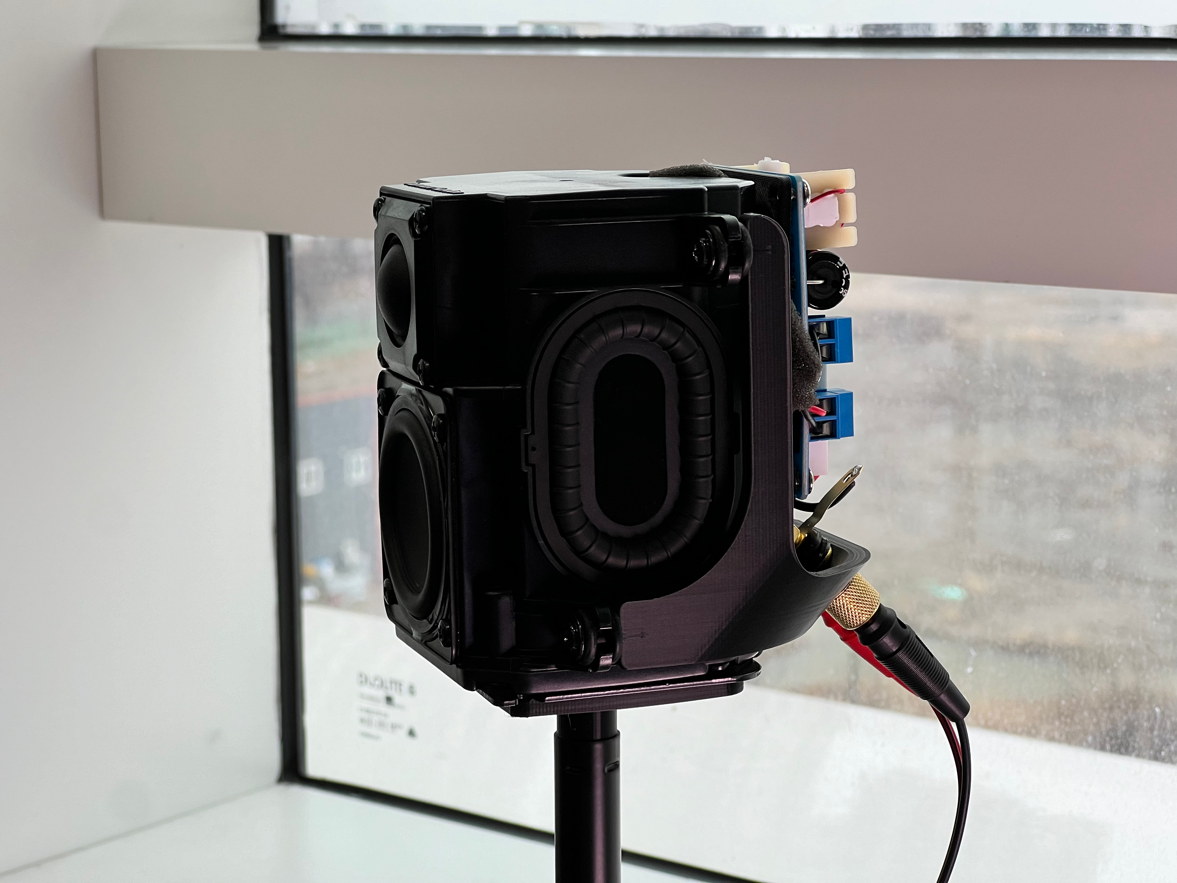 스탠드와 연결하는 부품, 바나나단자를 고정하는 부품, 크로스오버 네트워크를 고정하는 부품으로 만들었습니다.